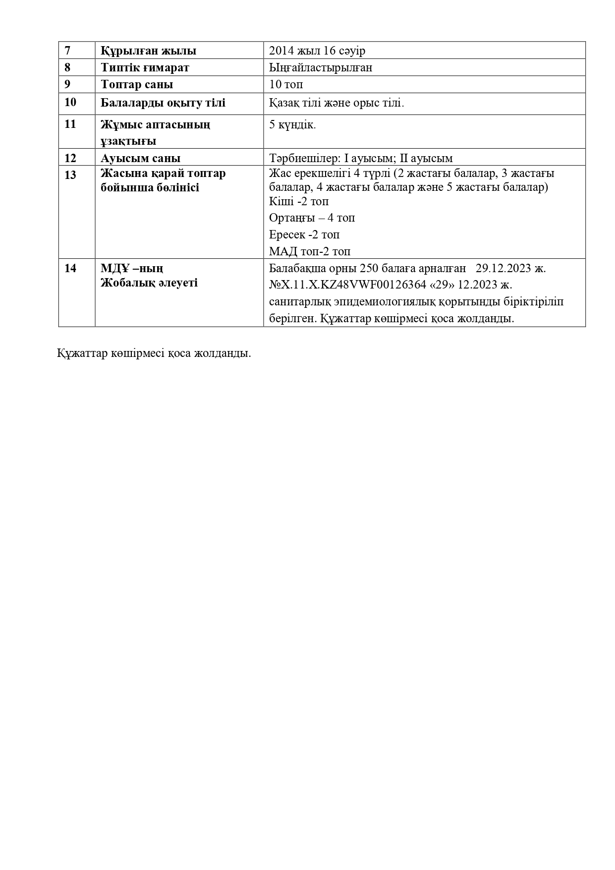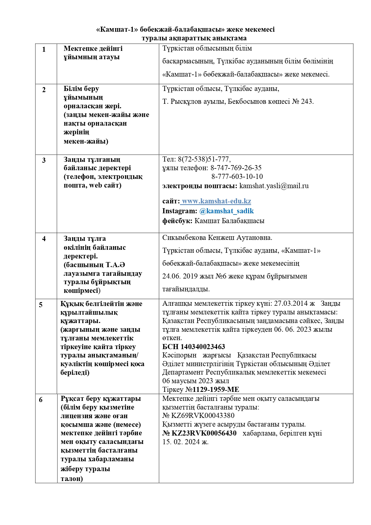 Бала тәрбиесі - ұлт тәрбиесі Қазақстан Республикасының Президенті Қазақстан Республикасының мемлекеттік Рәміздері "Камшат" бөбекжай -бақшасы" КММ Сайт мәзірі Басты бет БИН және Жарғы Балабақша туралы «Балапан» тобы «Болашақ» тобы «Беласнежка» тобы «Бөбек» тобы «Еркем ай» тобы «Қарлығаш» тобы «Қошақан» тобы «Лучики» тобы «Непоседа» тобы «Нұршуақ» тобы «Радуга» тобы АТА -АНАҒА Балабақшаға тіркелу Мемлекеттік аттестациялау Өзін -өзі бағалау Аттестация кемшіліктер бойынша толықтырулар Аттестация кемшіліктер бойынша толықтырулар Әдістемелік жұмыс Жетістіктер Педагог жетістіктері Балалар жетістіктері Пайдалы сілтемелер